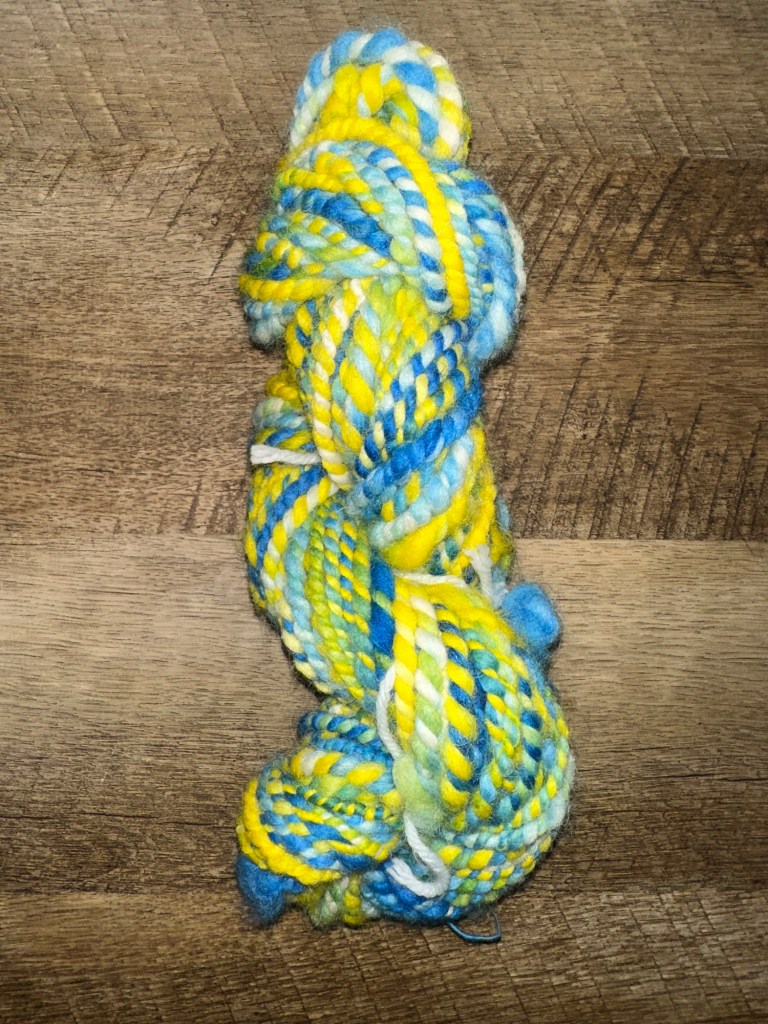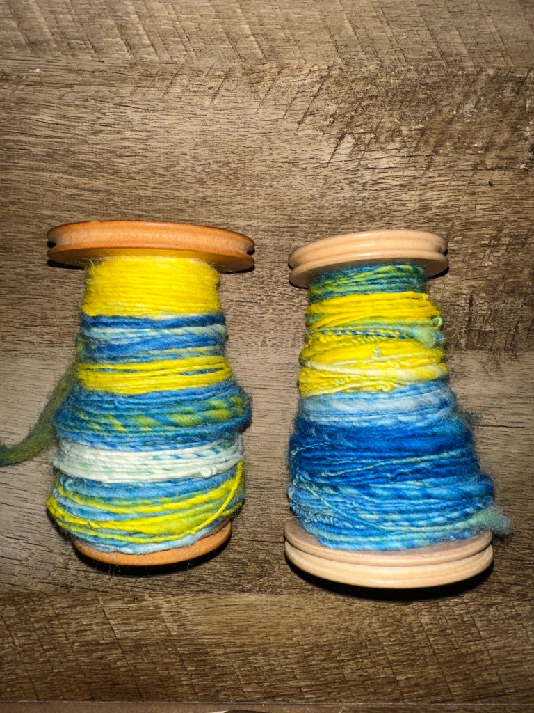 Hello, and happy Father’s Day to everyone who has a special someone to celebrate today! Just wanted to show off the latest dye projects and my first art yarn attempt. I’m also including a short timelapse video of me spinning. Hopefully the video works just fine. If not though, feel free to leave a comment. The colors I dyed the roving unfortunately did not turn out how I had initially hoped, but I don’t think it turned out bad either. The 2nd skeins consistency turned out much better than the first skeins which was neat. I think it’s pretty cool to see the difference in how they look against one another. The cable yarn was super fun to make. Definitely not perfect, but you can tell it’s very different from a regular 2 ply skein. It also took a lot longer to make than I anticipated, but worth it in the end. In the video, I’m just starting a new bobbin with some freshly split roving to make a 2 ply yarn. It’s the first step to accomplish any handspun yarn. Since the video is a timelapse, what you see in those 26 seconds is about 5-10 minutes of real time. Spinning goes by quickly for me currently haha. Well, that’s all I have for this post. Bye for now :).